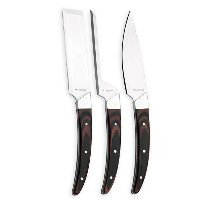 Το σετ μαχαιριών τυριού της Legnoart διαθέτει premium σχεδίαση και ποιότητα, με τρία μαχαίρια κατασκευασμένα από κορυφαίο ιαπωνικό ατσάλι. Το σετ περιλαμβάνει: