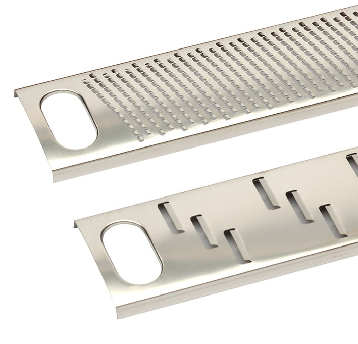 The blade can be washed by hand, but by removing the blade from the body, it can also be put in the dishwasher. The set consists of 3 interchangeable blades: Fine zester, Ribbon blade and Shaver blade. Here the set is seen in dark ash, but is also available in light, as well as the grater with a single blade.