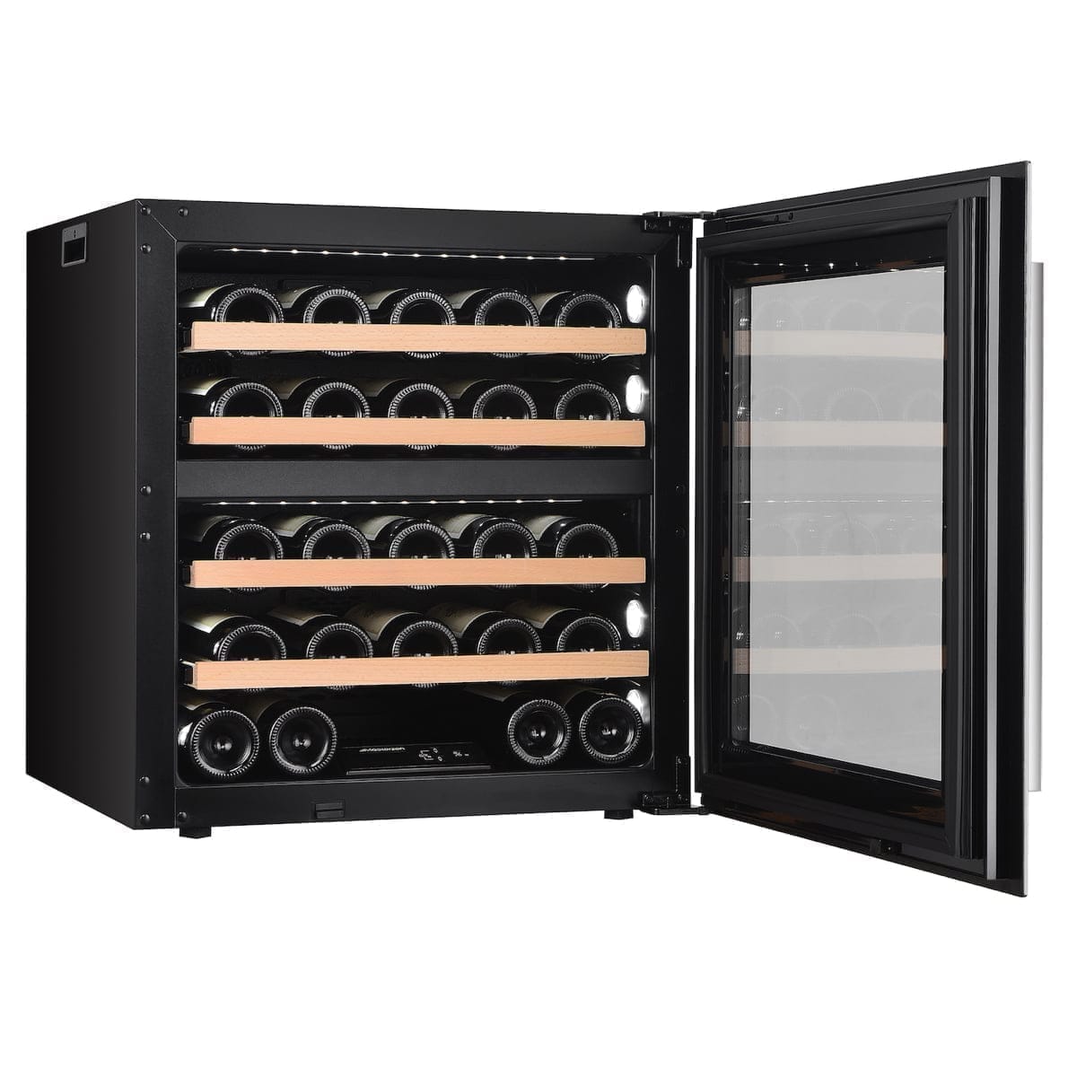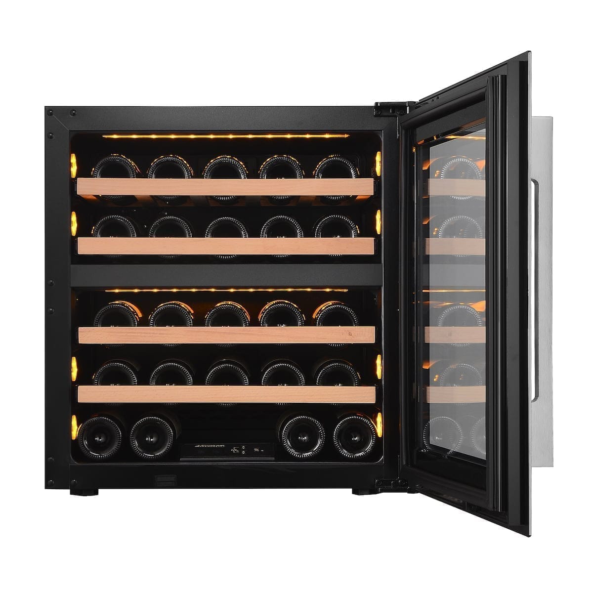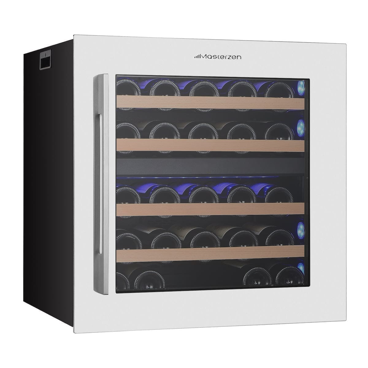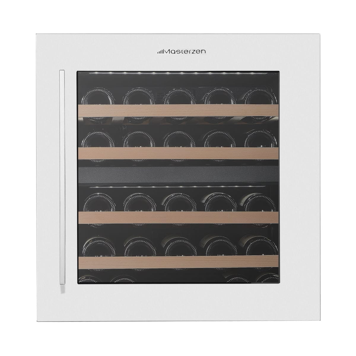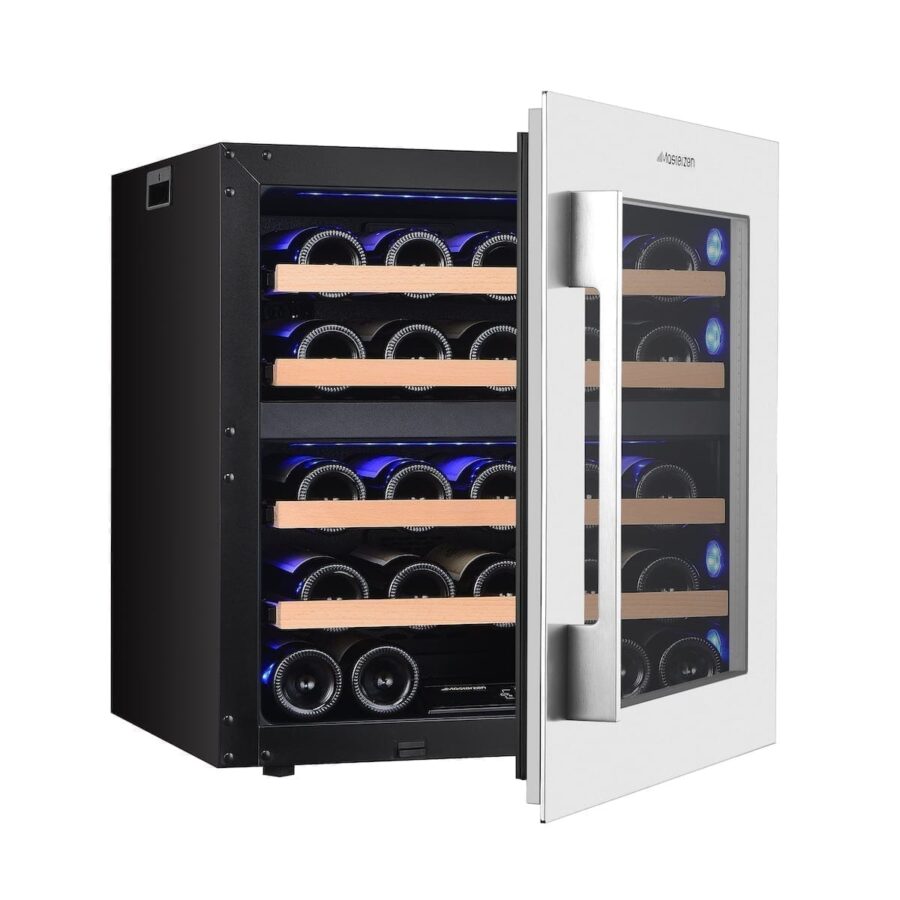 XPR W30D Πλήρως Εντοιχιζόμενος Διζωνικός Συντηρητής Κρασιών 26 Φιαλών Aνω του Πάγκου. Ο συντηρητής κρασιών Masterzen W30D Inox Πόρτα, σειρά XPR είναι πραγματικά ένας εξαιρετικά όμορφος και κομψός συντηρητής που τοποθετείται σε πλήρως εντοιχιζόμενη εγκατάσταση. Η σειρά eXPeRience για την απόλυτη πολυτέλεια στη ζωή μας. Οι συντηρητές κρασιών Mastezen σειρά XPR W σχεδιάστηκαν από λάτρεις του κρασιού με πολυετή εμπειρία και απευθύνονται τόσο στους λάτρεις του κρασιού όσο και τους επαγγελματίες. Ο συνδυασμός της πόρτας, Full Glass Black Door endtoend, και του και του τζαμιού, με 2 στρώματα LOW-E με φίλτρα για προστασία από UV & Infrared ακτινοβολίες, σχεδιασμού και εργονομίας κελάρι/συντηρητή για τη συλλογή σας. Προσεγμένοι σχεδιαστικά μέχρι την τελευταία τους λεπτομέρεια. Όπως αξίζει πραγματικά στην συλλογή των κρασιών σας, ώστε να διατηρούνται σε ιδανικές συνθήκες υγρασίας και θερμοκρασίας, προστατευμένα από UV & Infrared ακτίνες για να παλαιώσουν αλλά και έτοιμα να σερβιριστούν μοναδικά, καθώς διαθέτουν δύο ανεξάρτητες ρυθμιζόμενες ζώνες θερμοκρασίας.
